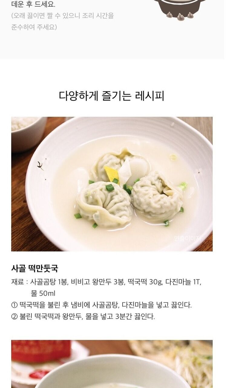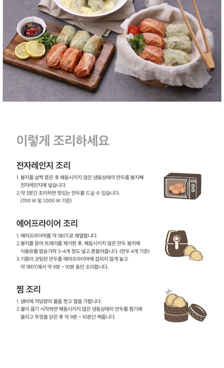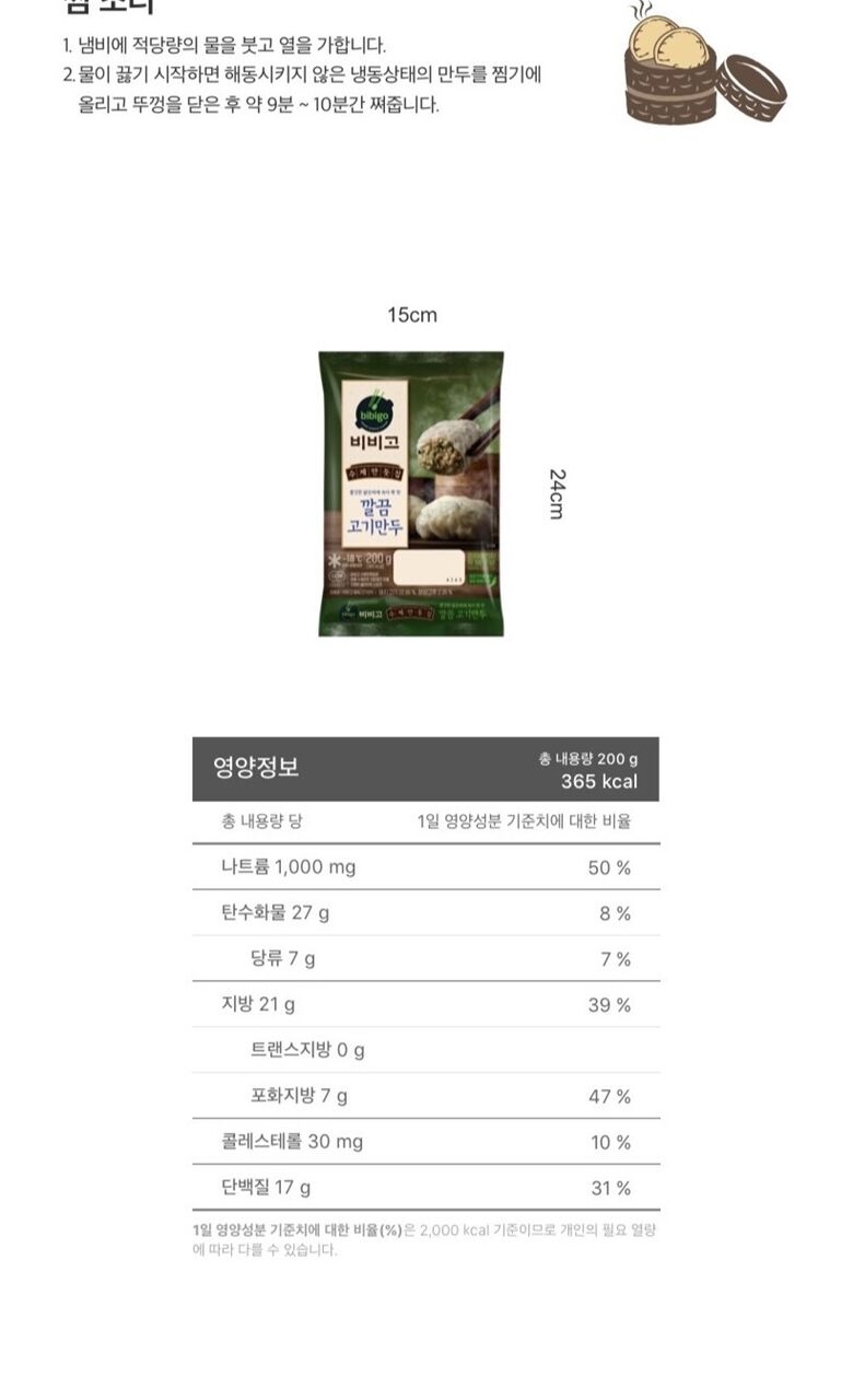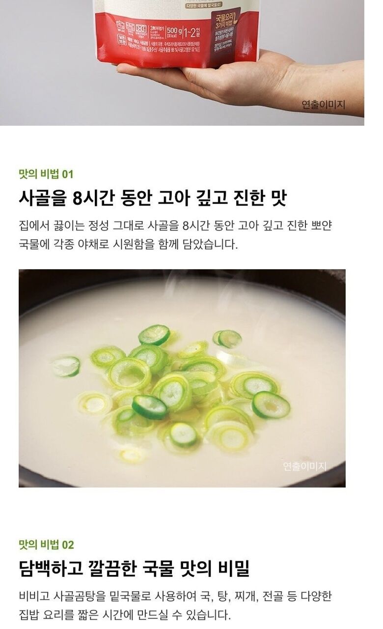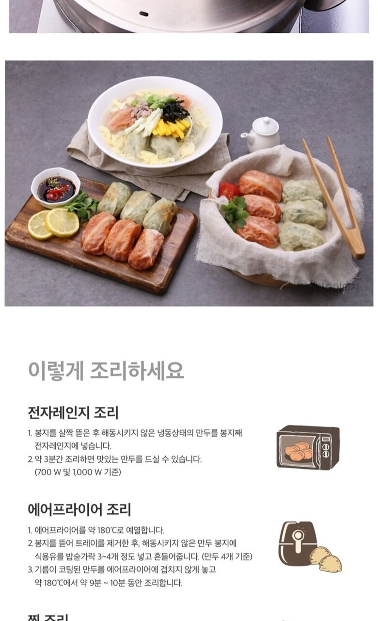 | 보관방법 또는 취급방법 | 만두: -18도 이하 냉동보관/ 곰탕: 실온보관 |