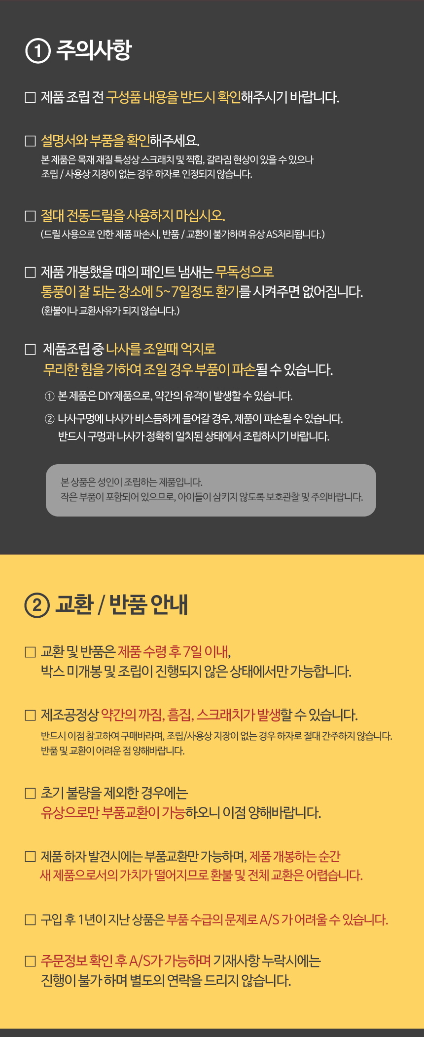 1. 주의사항 : 상품특성(설치상품, 상품크기, 일부 저단가 상품 등) 또는 지역여건 (산간, 도서지역)에 따라 배송이 지연되거나 추가 배송비가 발생할 수 있습니다.
